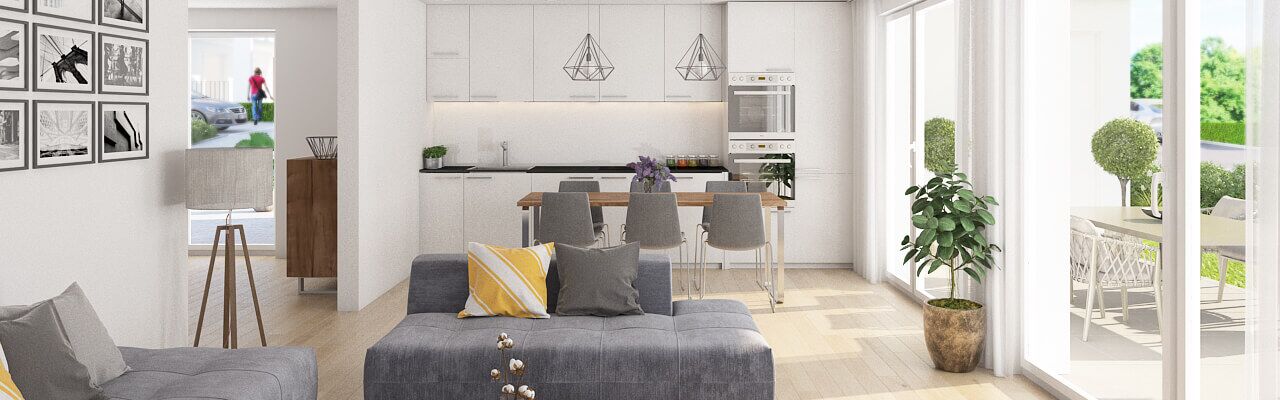 diese in einen zeitgemässen architektonischen Ausdruck. Die langgezogenen Baukörper mit ortstypischen Satteldächern, fügen sich harmonisch in das bebaute Umfeld ein.